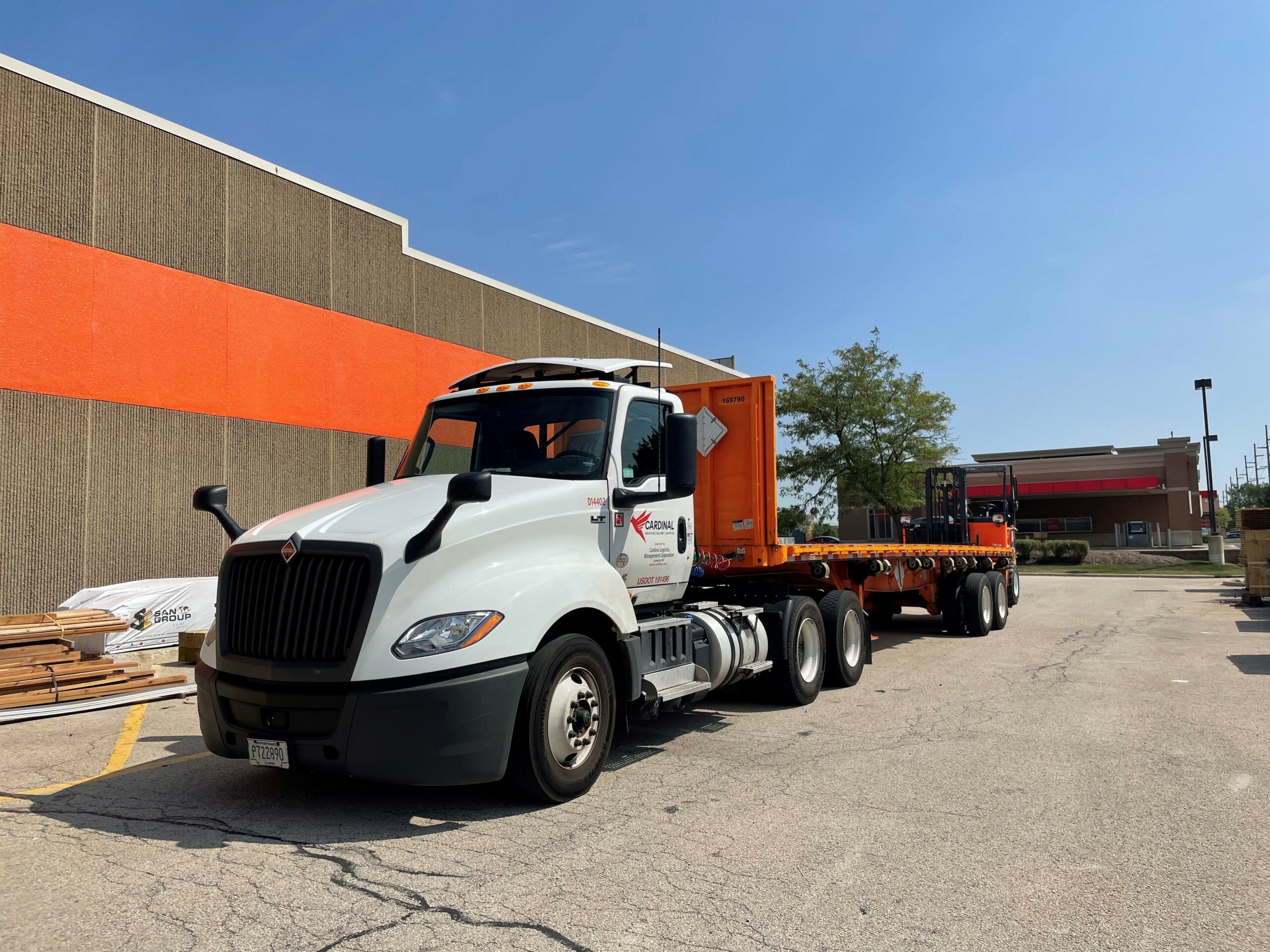 “I drive a 36-foot flatbed with a moffett hauling around building supply materials to homeowners, businesses, and new construction – all that,” says Dunaway. “I do love the flatbed job and riding the moffett. You get something new every day; it’s not just bumping docks or anything like that. You can get out and meet people, get a different route every day but get to be home every night, which is nice.”