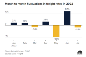 CNBC reported on new data presented by Cass Freight Index showing that recent inflation indicators are a sign that freight rates have peaked. According to the July Cass Freight report, U.S. freight rates increased 28% year over year but fell nearly 2% month over month in July, indicating that the U.S. market has reached peak freight rates just as peak shipping season encompassing both back-to-school and the holidays begins. Cass Index Report Author and ACT Research Sr. Analyst Tim Denoyer told CNBC “We’re coming into this peak season with much more free capacity. I think that’s going to be a good thing from a cost perspective for those big retailers who have been struggling with a lot of cost inflation.”